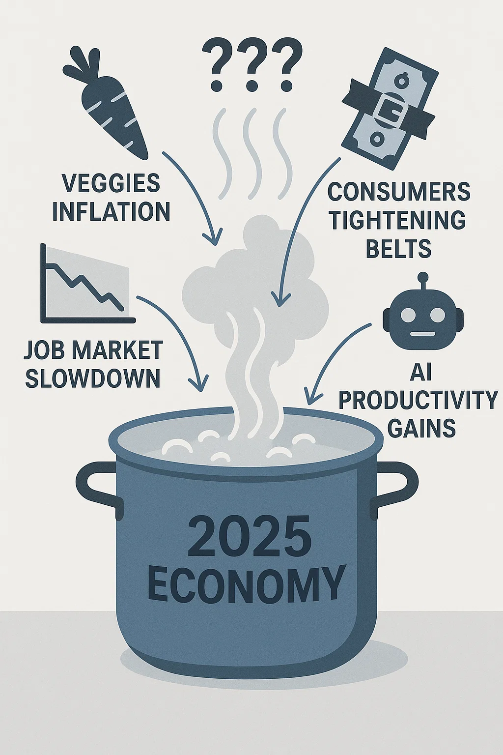 What happens when you mix these trends: inflation, consumer caution, labor softening, and AI productivity? The outcome is hard to predict. For executives, that uncertainty is itself the challenge.
